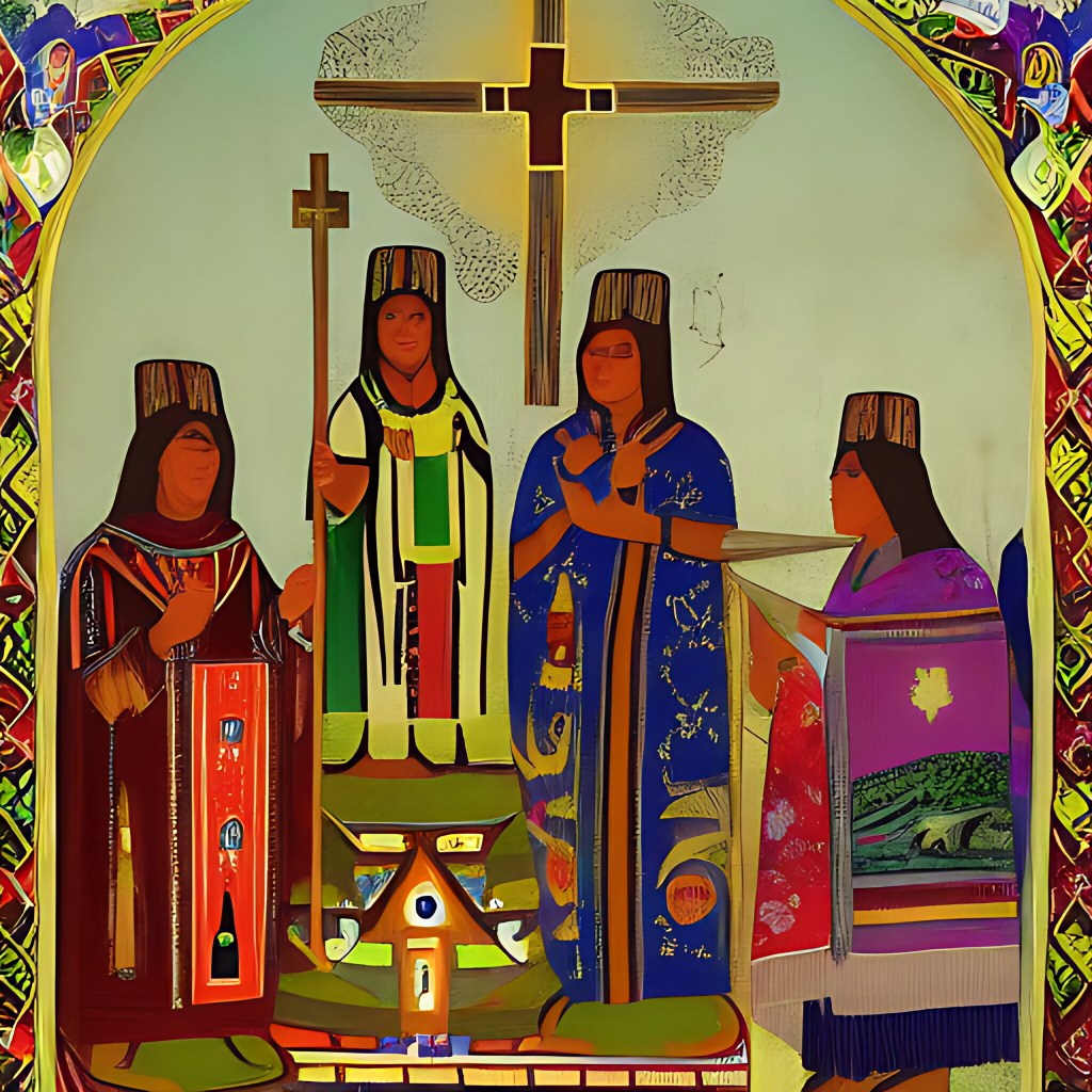 Description automatically generated2. Catholic Church: The arrival of the Spanish colonizers introduced Catholicism to the Ch’orti’ people. The Ch’orti’ people’s relationship with the Catholic Church is characterized by a blend of indigenous spirituality and Catholicism, resulting in a unique syncretic faith. While some Ch’orti’ people embrace Catholicism wholeheartedly, others incorporate indigenous rituals, beliefs, and practices alongside Catholic traditions. This syncretism allows them to maintain their cultural identity while adapting to the dominant religious framework.